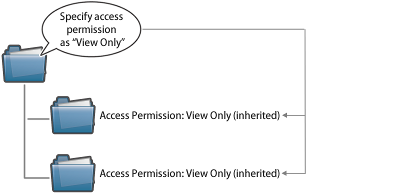 If a folder with "Editable" or "View Only" access permissions exists under a folder with "Hidden" access permissions, the folder with "Hidden" access permissions is displayed on the screen to show the folder's tree structure (the folder is treated the same as a folder with "View Only" access permissions). However, files directly under the folder will not be displayed.